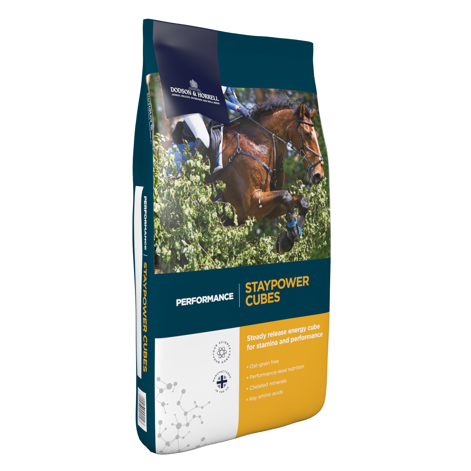 - Oat-grain free, lower starch performance feed providing a controlled energy release for horses in need of staying power and an even temperament.